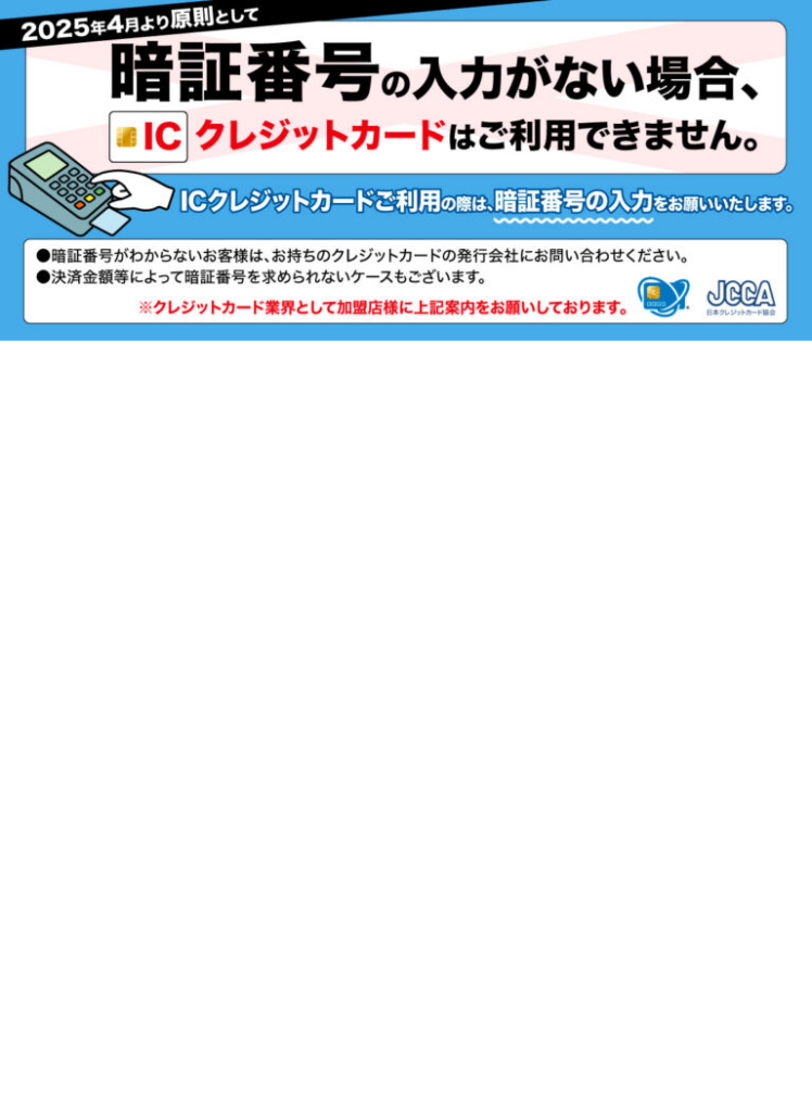 今後はフロントでのクレジットカード精算時は、暗証番号入力が原則となりますので